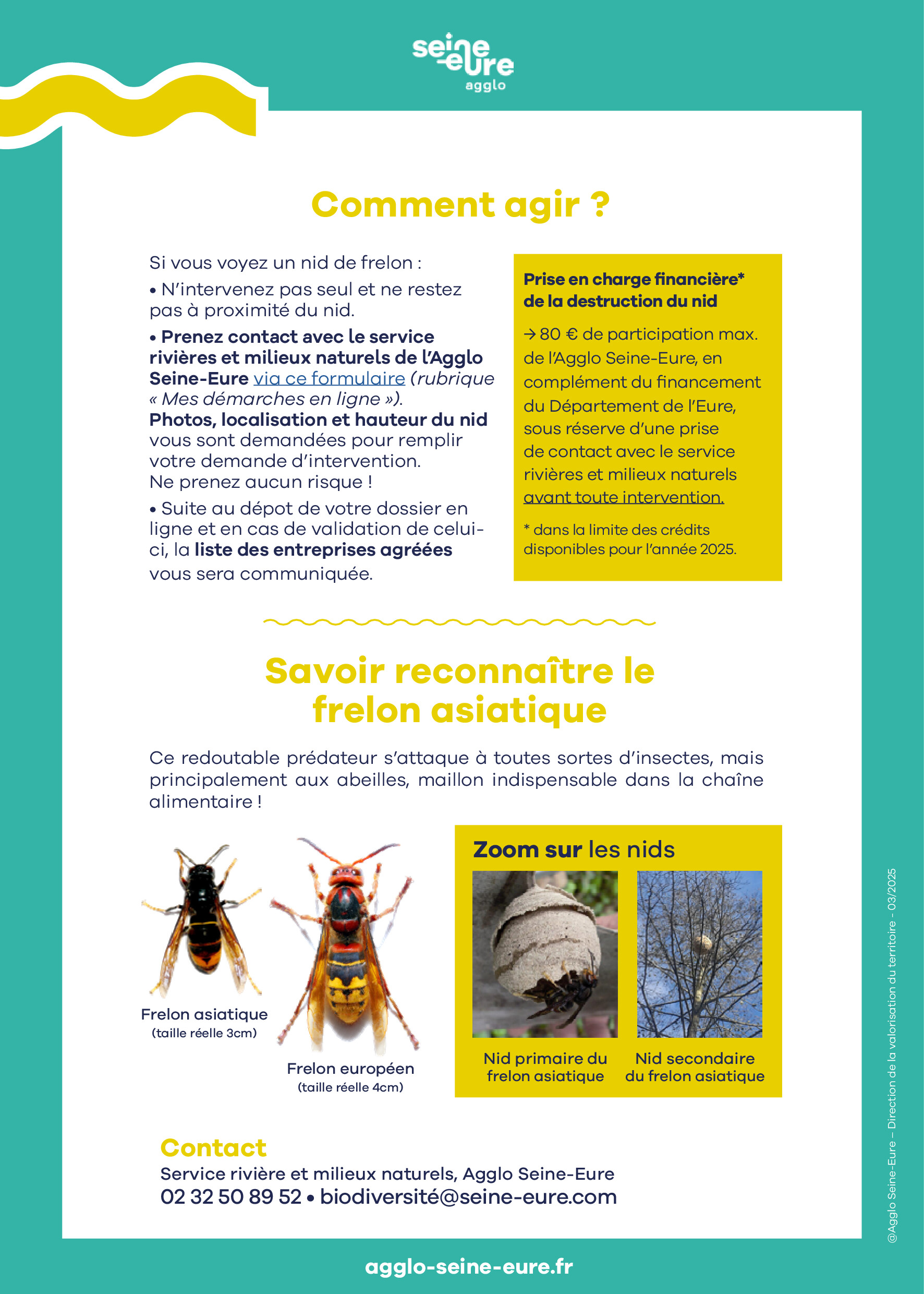 - Déclarer les nids de frelons asiatiques sur notre site : https://www.agglo-seine-eure.fr/mes-demarches-en-ligne/